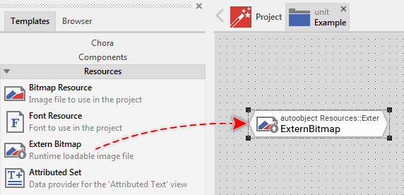 Depending on your application case, you have the option to add the Extern Bitmap as an embedded object directly to a GUI component or to add it as an autoobject to a unit. The first case is suitable if you want the Extern Bitmap being used locally within the GUI component only. The second case, in turn, is appropriate if you intend to share the Extern Bitmap among multiple GUI components like a kind of common bitmap resource.