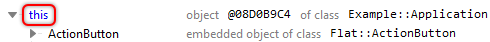 Depending on the parentage of an object the Variables window uses different notations to identify it. In particular the instance this (the object in context of which the code is currently executed) is represented by a homonymous identifier this: