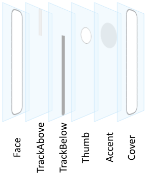 Up to version 12 inclusive the Z-order of visual elements belonging to the Vertical Slider (the order in which the views are displayed one above the other) was fixed predetermined. The Face visual element, for example, was displayed always in the background of the widget while the Thumb and Cover views in the foreground. Starting with the version 13, the Z-order can be modified. For this purpose you specify for each visual element its stacking priority value as integer number. As consequence, visual elements with higher stacking priority will overlap visual elements with lower stacking priority. To configure the stacking priority use following properties:
