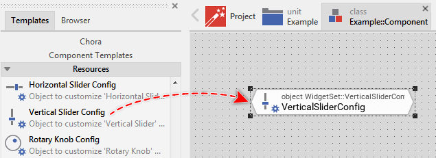 ★As explained in the section Duplicate an existing autoobject locate the object WidgetSet::VerticalSlider_Lime_Large and copy it to one of your own project units.