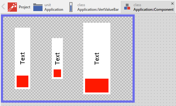Once you have created the Vertical Value Bar component, you can use it to assemble more complex components. Technically seen, you embed an instance of the value bar class in-place within some superior GUI component. At the runtime, the superior GUI component takes care of the correct initialization and the displaying of all embedded components, so they appear similarly as you have composed them at the design time.