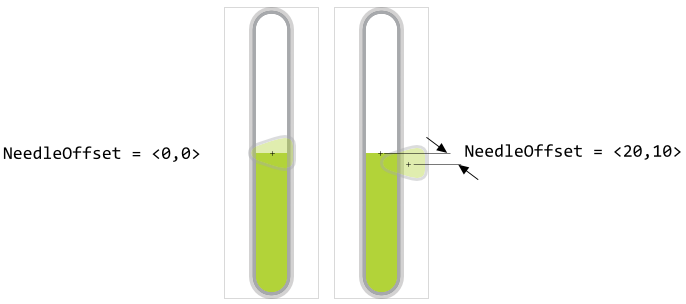 Unless it was explicitly configured, the center of the needle and the position where the both tracks join together do match. In other words, the needle appears horizontally centered at the tracks join position. By using the property NeedleOffset an additional displacement for the needle can be configured. The displacement is useful, for example, to correctly adjust the needle position: