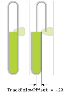 This property controls the appearance of the lower track at its edge corresponding to the actual needle position. Per default the corners at the edge are rounded according to the value specified in the above mentioned TrackBelowCornerRadius property. By configuring the property TrackBelowFlattened with the value true, the corner rounding occurs only when the track has assumed its topmost position. As long as the track is smaller, the edge at the actual needle position is clipped (it appears flattened). The topmost position for the track is configured by the property TrackBelowMarginTop. |
