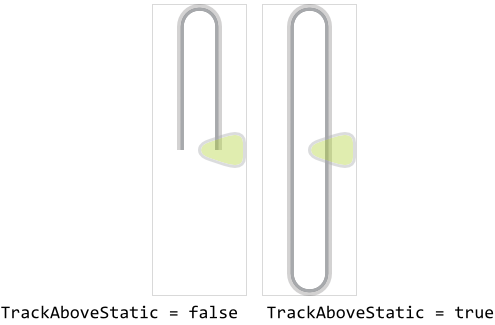 This property controls the appearance of the upper track at its edge corresponding to the actual needle position. Per default the corners at the edge are rounded according to the value specified in the above mentioned TrackAboveCornerRadius property. By configuring the property TrackAboveFlattened with the value true, the corner rounding occurs only when the track has assumed its bottommost position. As long as the track is smaller, the edge at the actual needle position is clipped (it appears flattened). The bottommost position for the track is configured by the property TrackAboveMarginBottom. |