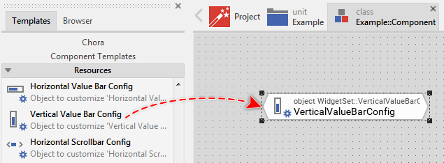 ★As explained in the section Duplicate an existing autoobject locate the object WidgetSet::VerticalValueBar_Lime_Large and copy it to one of your own project units.