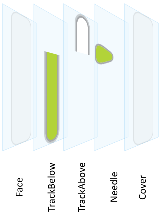 The following figure demonstrates once more the above described views existing internally in every Vertical Value Bar. Please note how the visual elements are arranged one above the other. Per default, the visual element Face resides in the background of the widget: